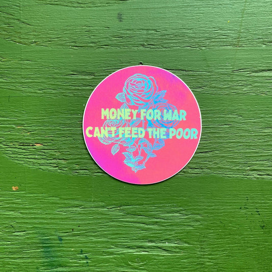 Money For War Can’t Feed the Poor Lino Print Vinyl Sticker