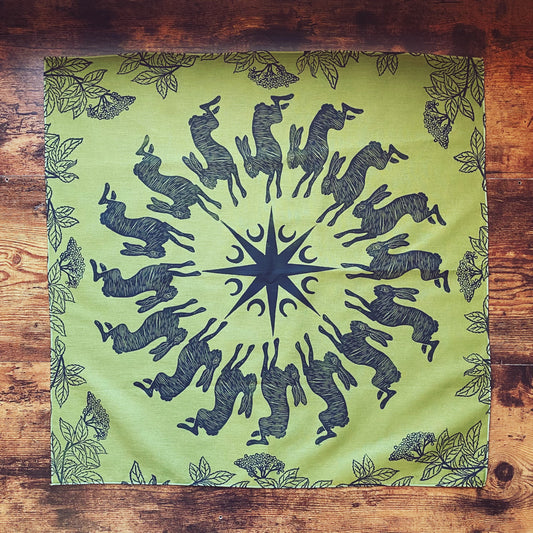 The Elderberry Solstice Rabbits Block Printed Bandana