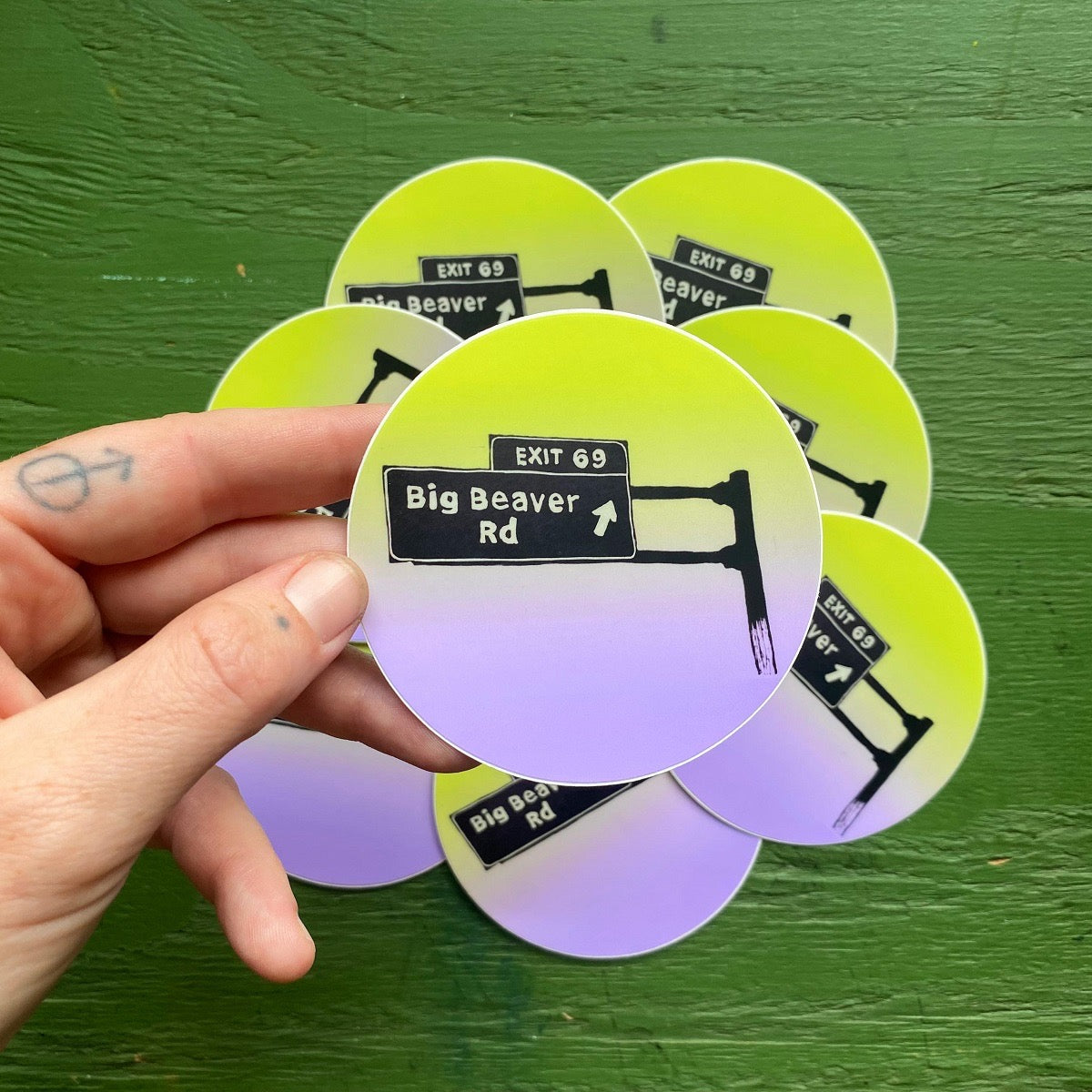 Exit 69 Big Beaver Road Lino Print Vinyl Sticker