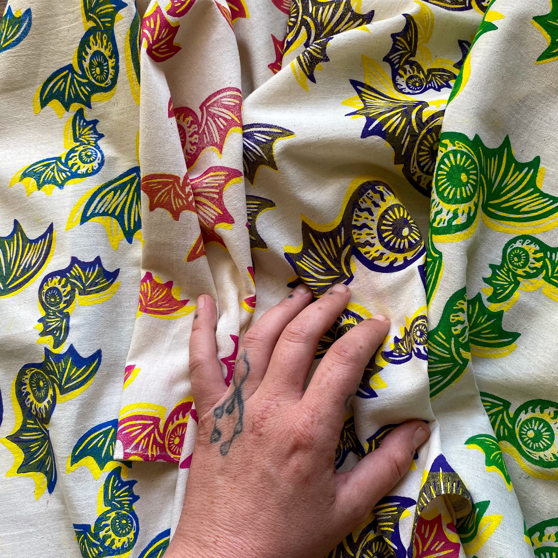 Textiles hand printed using hand carved blocks. Always printed using non-toxic washable...