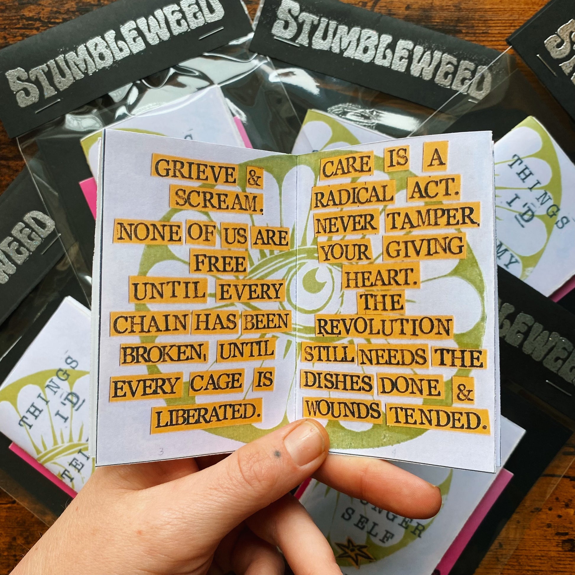 - 8-page mini zine printed on 28 lb paper (8 1/2 x 11in. paper folded)
