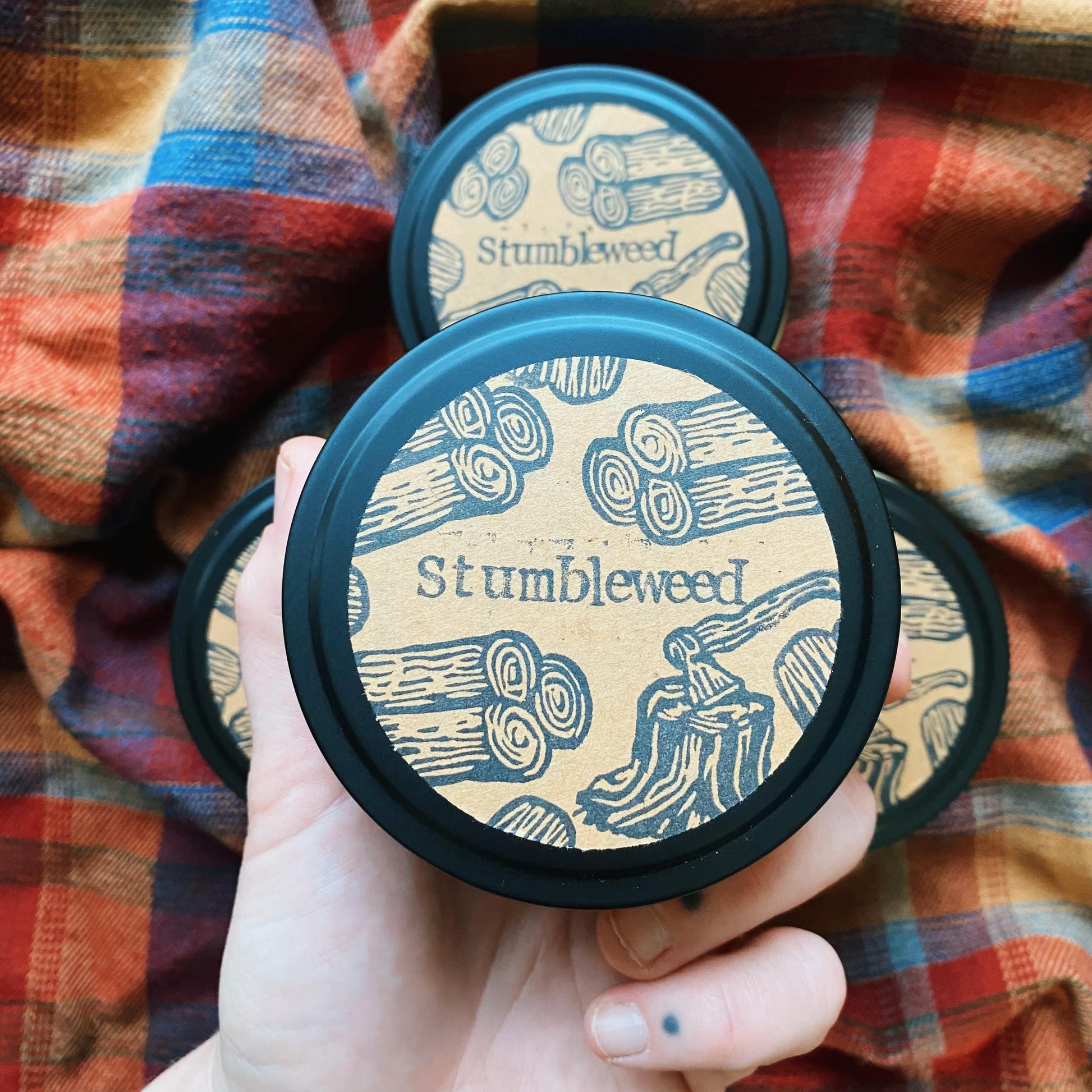 Soy candles hand poured seasonally in small batches. Adorned with lino print...